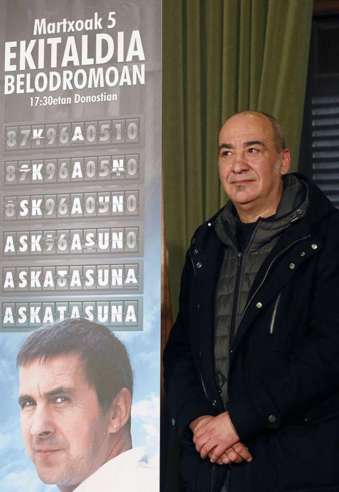 El exdiputado general de Gipuzkoa, Martín Garitano, en la presentación del acto político convocado el día 5 de marzo en el velódromo de Anoeta, en el que intervendrá Oteg