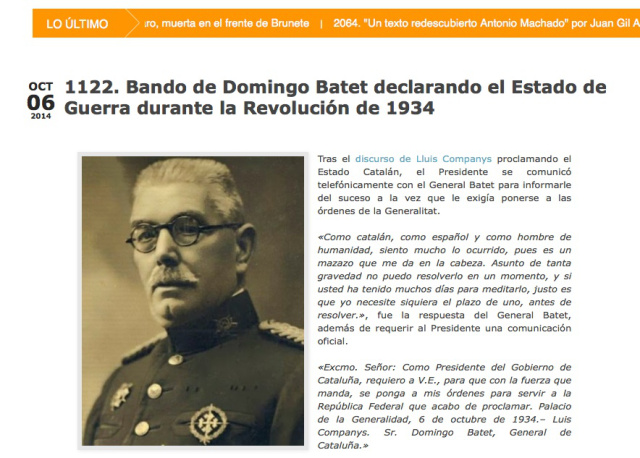 El 6 de octubre de 1934, un presidente c atalán, Lluís Companys Jover, hizo lo mismo que el Parlamento catalán ayer. El general Batet tardó diez horas en desmontar el golpe. Lo contó Enrique de Angulo en un libro titulado precisamente ‘Diez horas de Estat Català’.