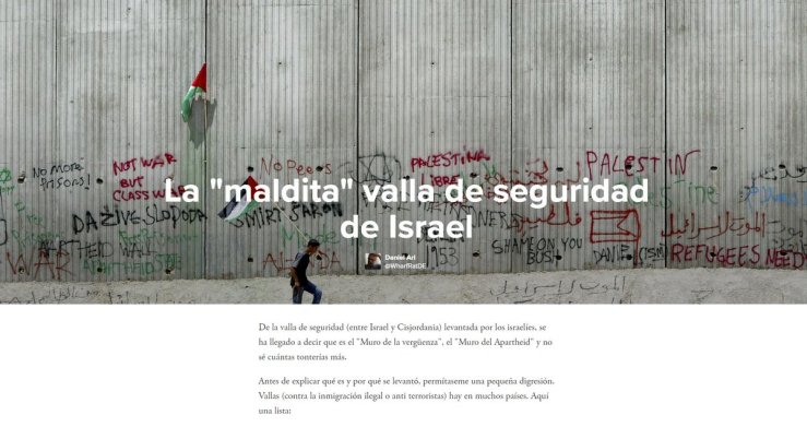 Los españoles tenemos la nuestra, en Melilla. Pero al progrerío mundial sólo le preocupa una: la israelí. No tiene la menor idea de por qué está allí ni cuál es su finalidad, pero se sirve de ella a menudo para cargar su discurso judeófobo.