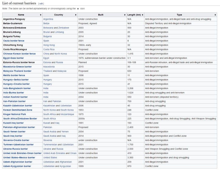 Antes de explicar qué es y por qué se levantó, permítaseme una pequeña digresión. Vallas (contra la inmigración ilegal o anti terroristas) hay en muchos países. Aquí una lista: