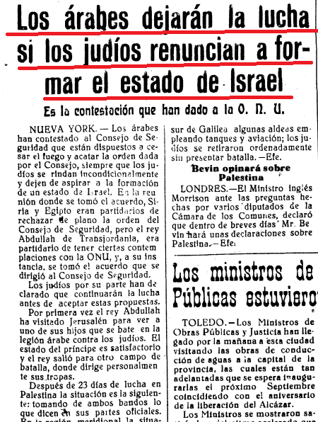 La vía pacífica nunca ha sido una opción para los dirigentes árabes en relación a Israel, tampoco lo fue lógicamente para los dirigentes palestinos de la época que se enzarzaron, con ayuda de los primeros, en una guerra de exterminio contra Israel iniciada por ellos.