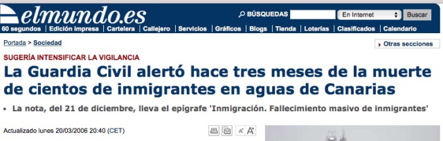 El 21 de diciembre de 2005 el subdirector general de Operaciones de la Guardia Civil, José Manuel García Varela, envió una nota al coronel jefe de la Zona de Canarias, Antonio Cañamero, en la que se daba cuenta de que